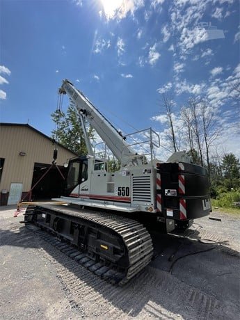 ALL's Link-Belt TCC-550 offers a four-section main boom with a length of 115’, a jib length of 51’, and a lift capacity of 55 USt or 110,000 lbs. This hydraulic crawler crane does not require outriggers and is built to transport heavy materials and move around a variety of job sites, even with rough terrain. For additional flexibility, the TCC-550 has a 360 degree rotating main boom.